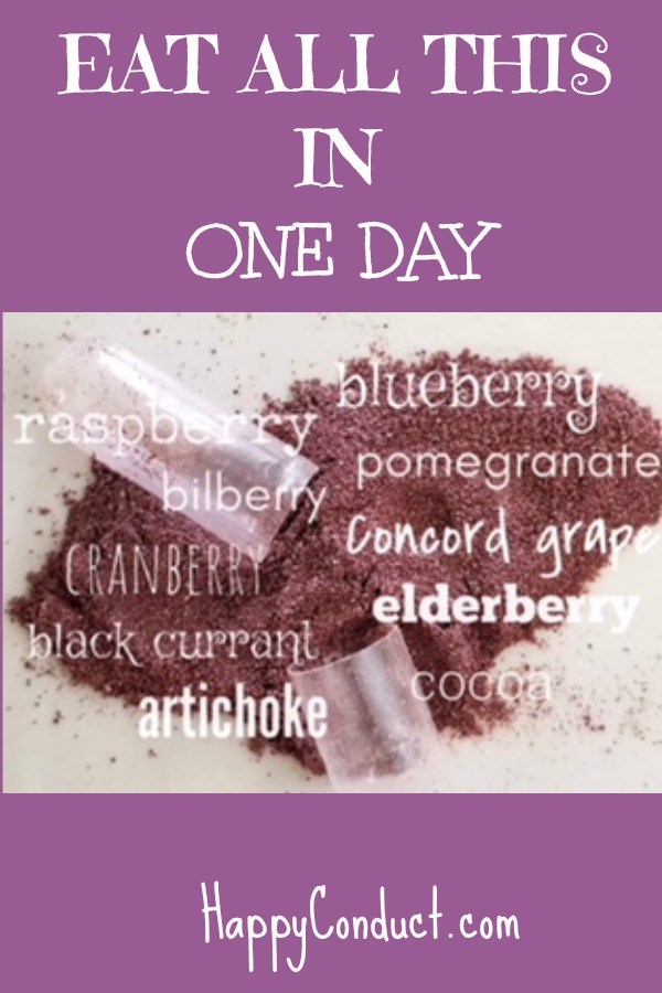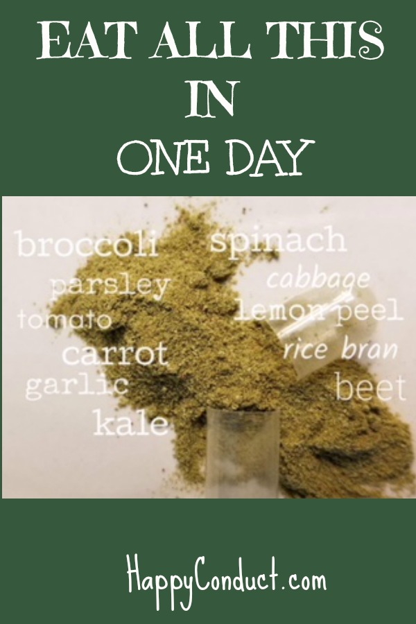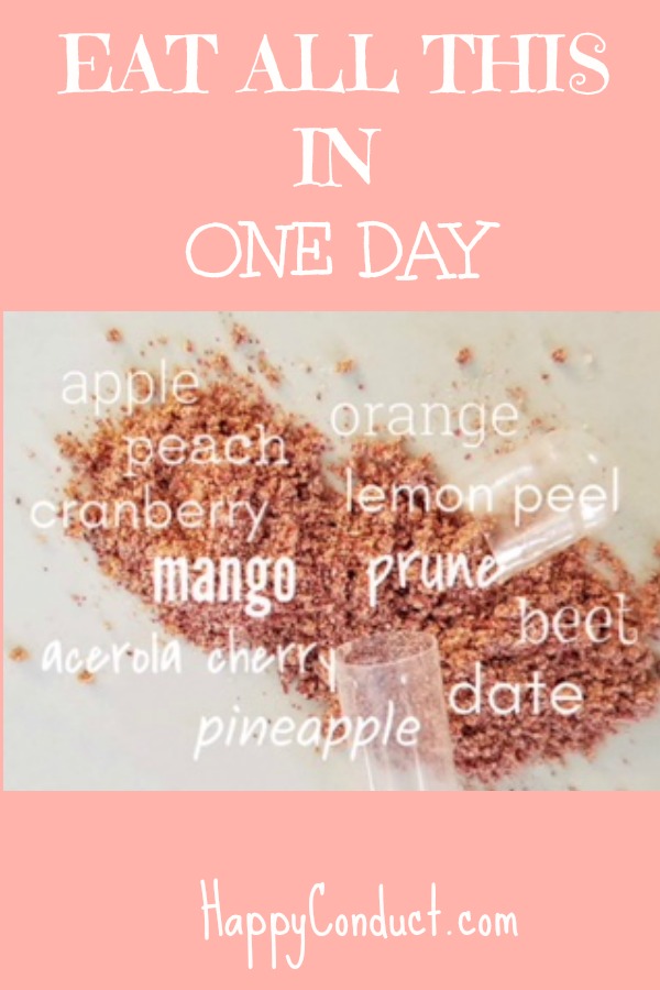 Look at that list. It’s amazing. There is no way anyone could eat that amount of produce everyday. Just think of the list of benefits just ONE piece of fruit provides or just ONE vegetable. The health benefits you reap are enormous.